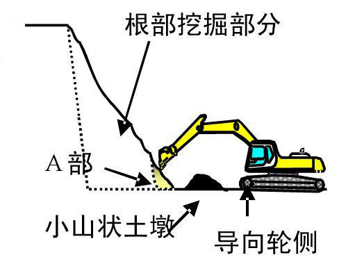 (3)注意上部挖掘時如果將根部的巖石保留著,將會影響輪式裝載機(jī)的搬運作業(yè)。