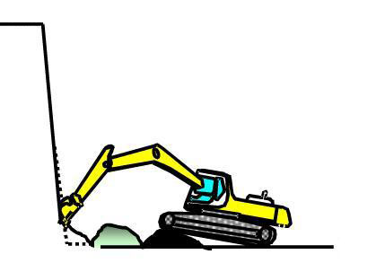 (4)挖機(jī)需要將作面最下方殘留的堅硬部分進(jìn)行挖掘作業(yè)。此外,還需將挖掘下來的碎石盡量收攏到石堆上。
