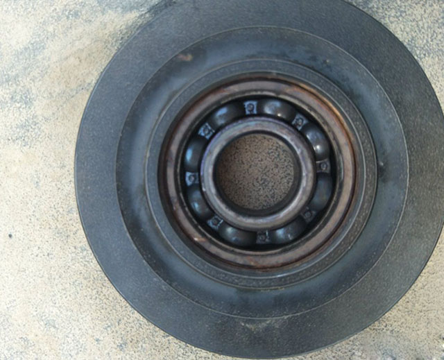 第二步:用手按住卡環(huán),用平頭螺絲刀把卡環(huán)一挑,挑掉卡環(huán)后就是軸承密封圈,時面的鋼珠在干磨。