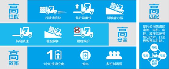 通過搭載自主研發(fā)的鋰電池,比亞迪叉車徹底解決了內(nèi)燃叉車尾氣排放的污染問題,并突破傳統(tǒng)電動叉車噸位與動力的局限,成功開發(fā)出大噸位平衡重叉車,承載能力延至8噸,填補了國內(nèi)大噸位電動叉車的空白。整車配置先進的電機、電控、液壓系統(tǒng)以及出色動力總成,各項性能高效穩(wěn)定,動力強勁,可完全媲美內(nèi)燃叉車。另外,比亞迪叉車續(xù)航時間長、充電快、耐高低溫等特點,可滿足工作強度大、高負荷、氣候嚴峻等惡劣工況,實現(xiàn)高效作業(yè)。