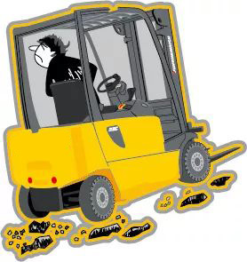 在有碎石、光滑或不平整的路面行駛需特別小心,以防叉車傾翻。