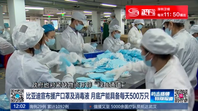 深圳企業(yè)比亞迪宣布援產(chǎn)口罩及消毒液。比亞迪方面9號(hào)表示,口罩預(yù)計(jì)2月17日量產(chǎn)出貨,到本月底產(chǎn)能具備每天500萬(wàn)只,消毒液產(chǎn)能每天5萬(wàn)瓶。
