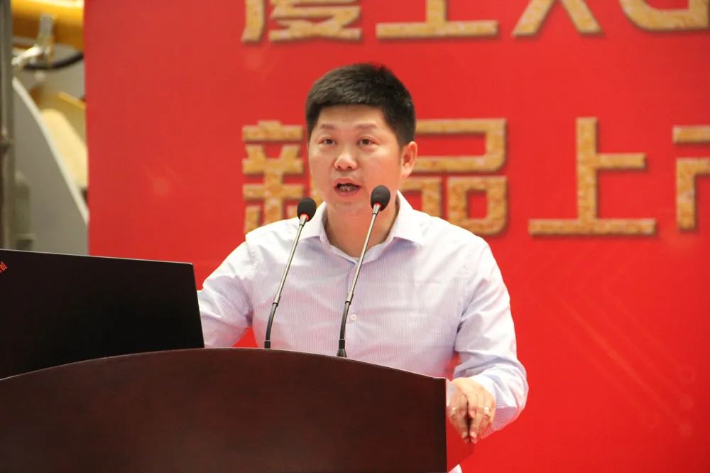廈工技術(shù)研發(fā)中心院長(zhǎng)王文龍介紹最新上市的新產(chǎn)品廈工XG955N裝載機(jī)