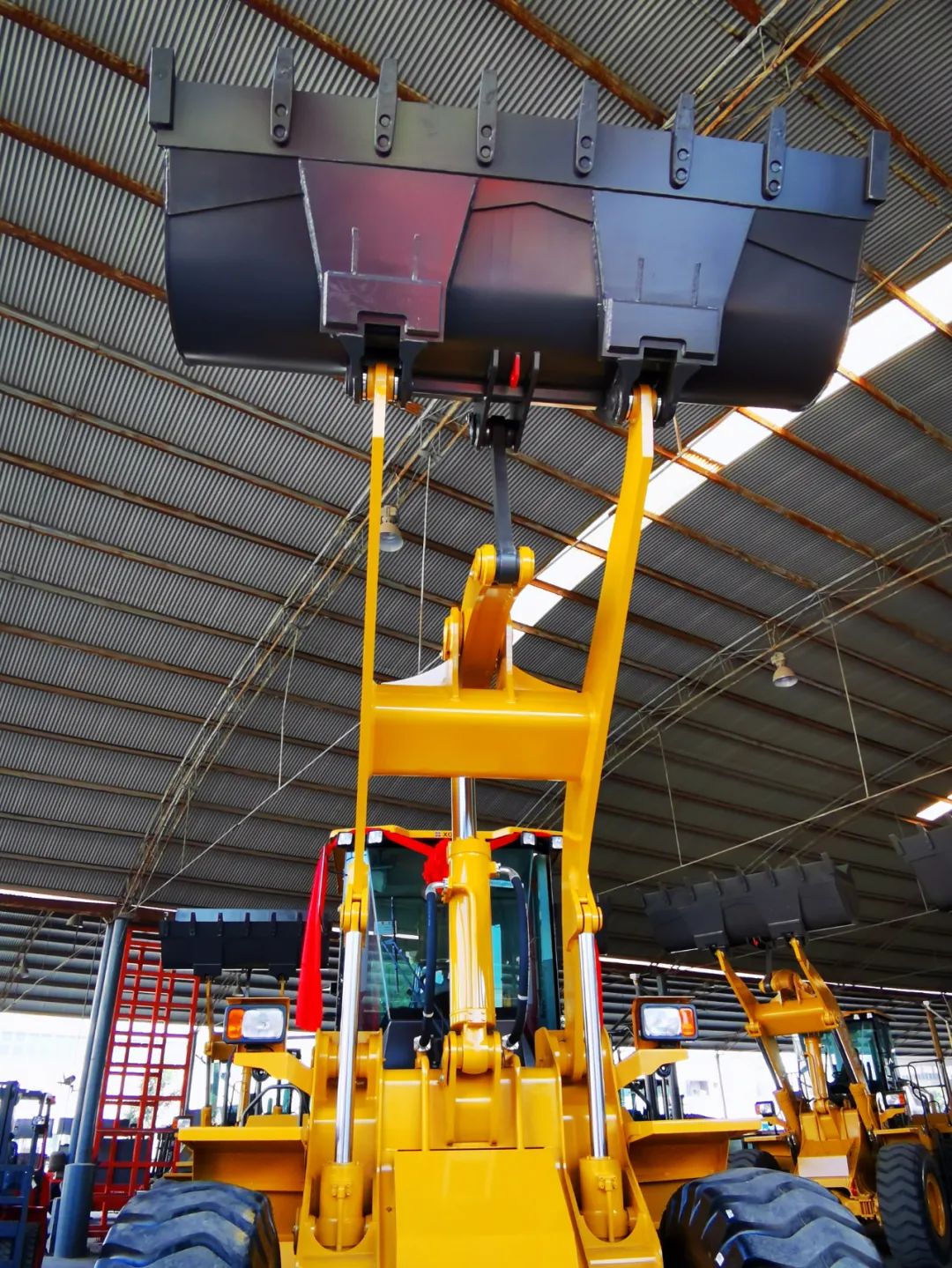 2、立式油缸工作裝置布局,高位提升力大,滿斗裝車效率高,更適用于裝卸和起吊作業(yè)工況。