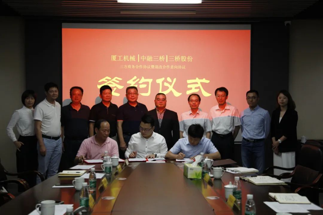 福建省機械工業(yè)聯(lián)合會會長許振明;廈工股份公司總裁林春明、副總裁兼財務(wù)總監(jiān)李喜勇、總工程師黃鶴艇;中融三橋公司蔡報軍、董事長姜洋、總經(jīng)理吳繼成出席簽約儀式。